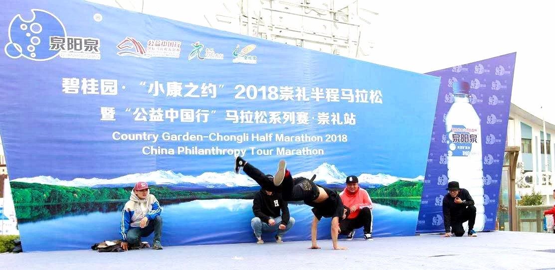 ?????? 在馬拉松賽道起點的泉陽泉品牌互動區(qū),安排了街舞及啦啦操表演,現(xiàn)場還設(shè)置了游戲互動環(huán)節(jié),玩在其中,樂在其中,增加了娛樂性,讓更多的人參與進來,感受馬拉松帶給大家的快樂。