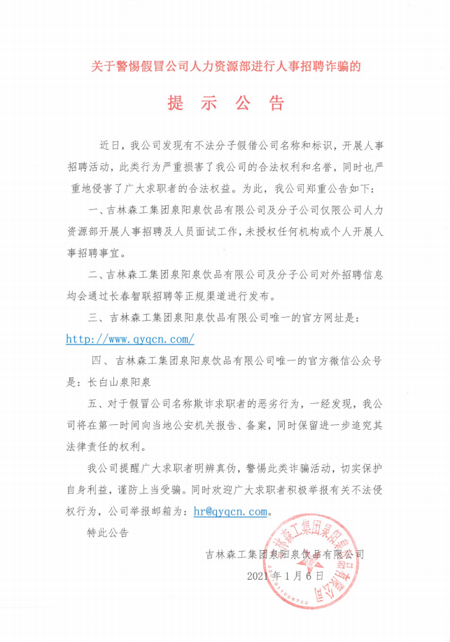 吉林森工集團(tuán)泉陽(yáng)泉飲品有限公司